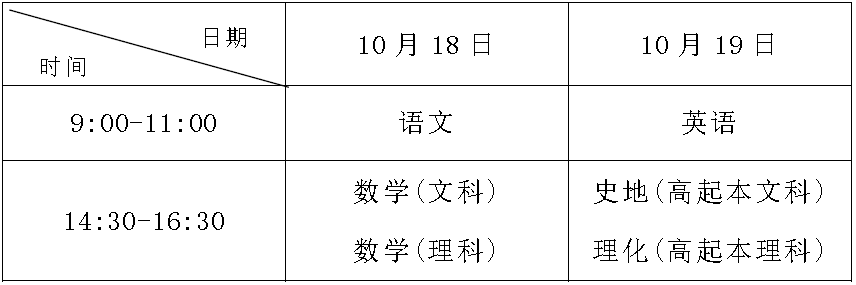 1.高中起点升本、专科考试时间表