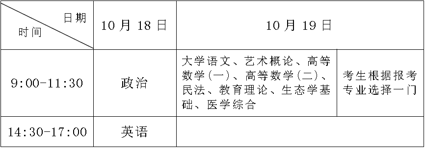 2.专科起点升本科考试时间表
