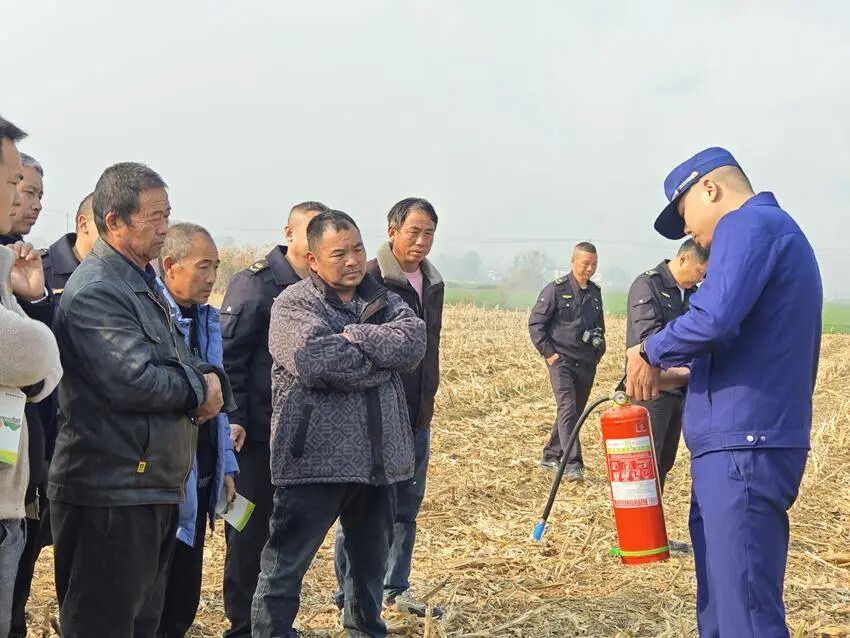 此次活动分两大环节有序开展。在农机安全知识宣传环节,工作人员通过发放手册、现场讲解等形式,向农机手普及农机日常安全操作规范、故障排查技巧及消防安全注意事项,强化农机手安全责任意识。在模拟救援演练环节,针对农机作业中可能出现的火情、人员意外受伤等突发场景,消防救援人员与农业执法人员协同配合,演示应急响应、火情控制、伤员转移等处置流程,农机手现场实操灭火器,学习简易救援操作技巧,进一步强化应急实战应对水平。